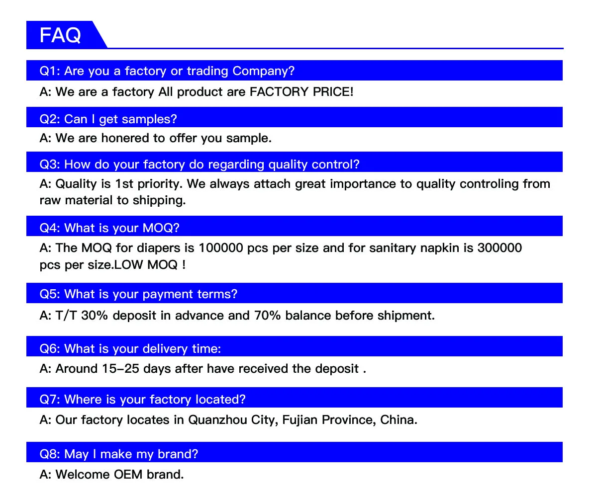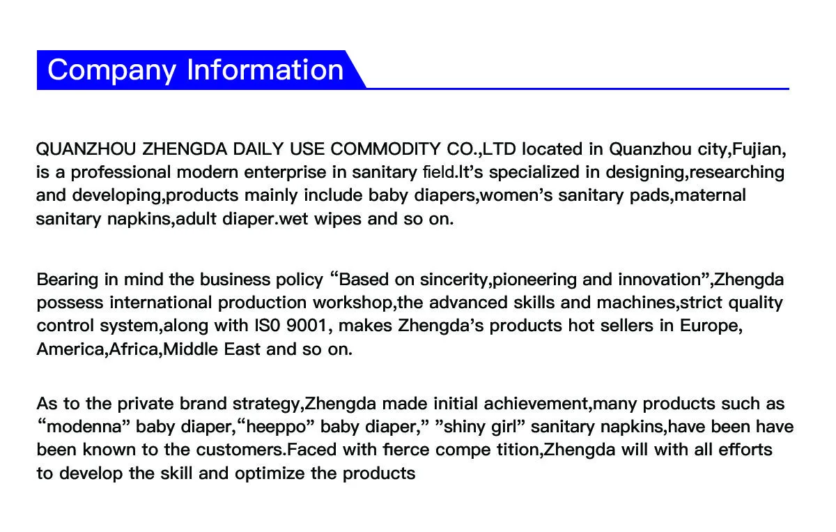 मुख्य उत्पादों: सैनिटरी नैपकिन, बेबी डायपर, वयस्क डायपर, अंडरआर्म पैड